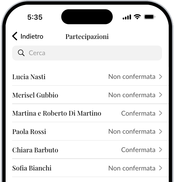 Mantieni la lista degli invitati sempre aggiornata, consentendo loro di confermare presenze, comunicare preferenze alimentari e altre info.